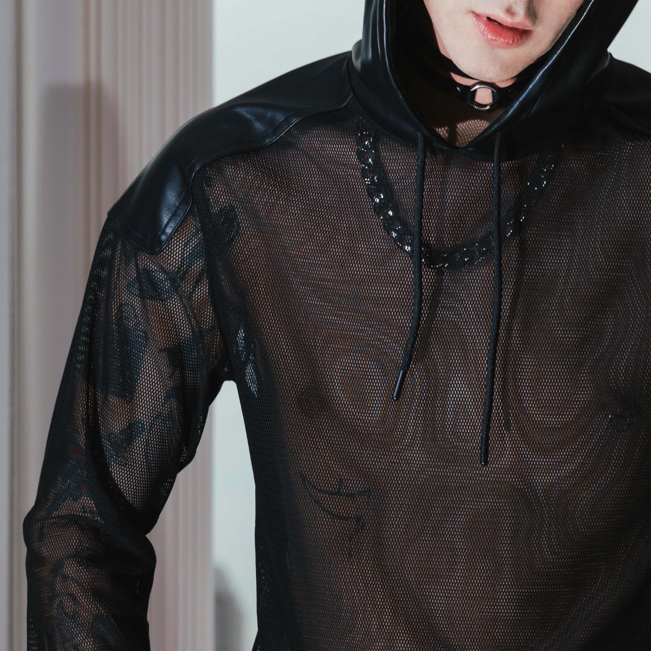 The Intake Hooded Long Sleeve takes mesh and faux leather to the edge. With sheer panels that tease and slick shoulders that mean business, this cropped pullover was made to flex. The hood adds attitude, the cuffed sleeves keep it sharp, and the fit? Pure physique porn. Wear it when you want attention—but don’t want to ask for it.